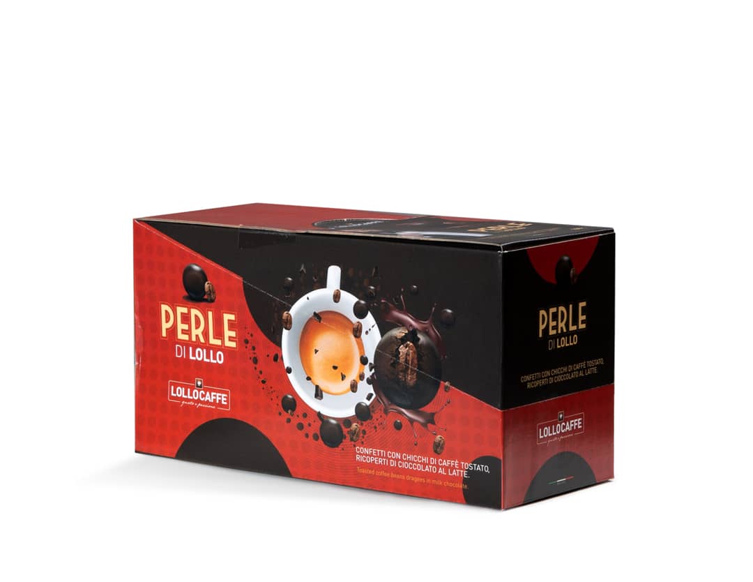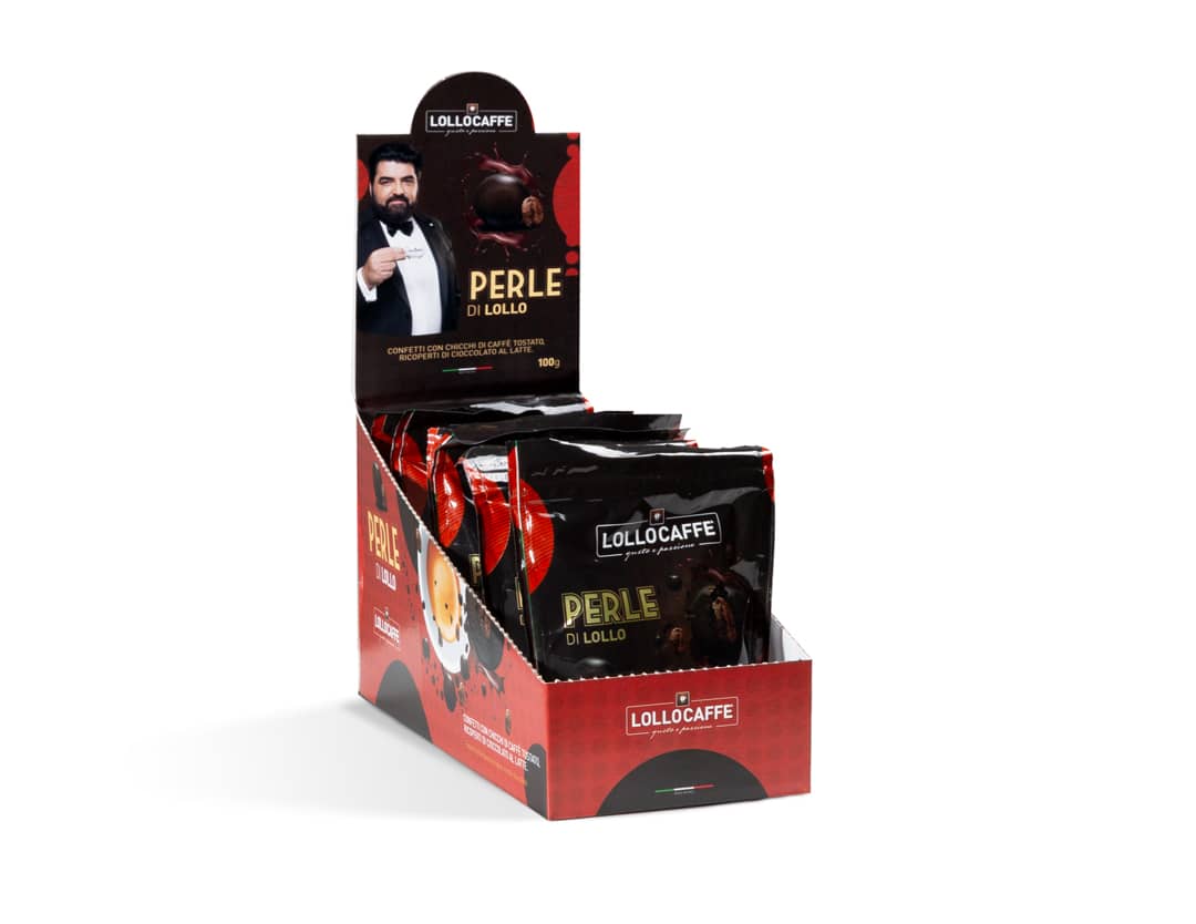 Chicchi di pregiato caffè "Lollo" ricoperti di finissimo cioccolato in confezione da 100g.
